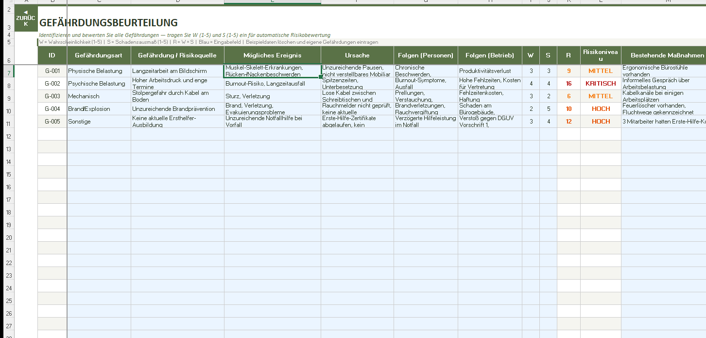Gefährdungsbeurteilung Excel-Vorlage — ArbSchG §5 konform