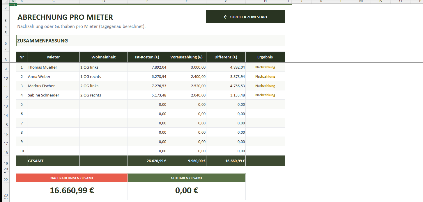 Nebenkostenabrechnung Excel