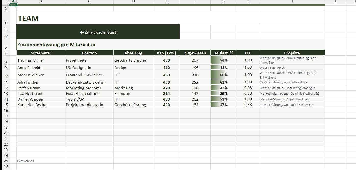 Ressourcenplanung Excel