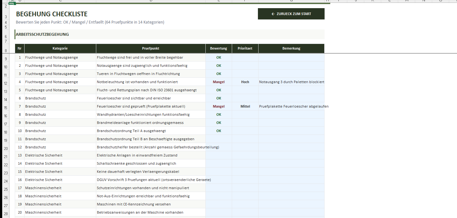 Sicherheitsbegehung Checkliste Excel