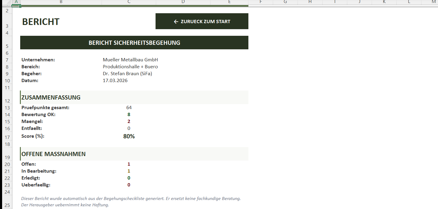 Sicherheitsbegehung Checkliste Excel — Professionelle Arbeitsschutzprüfung