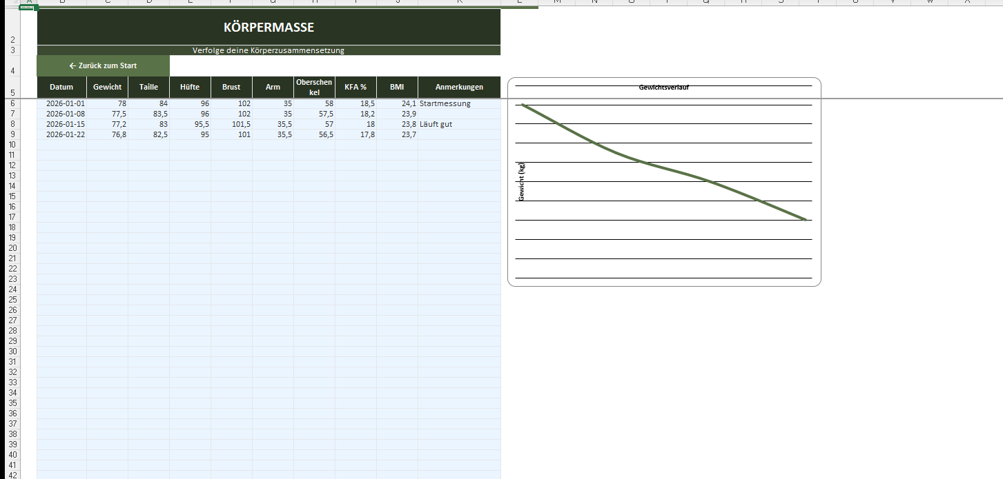 - Cardio, Körpermaße und druckbares Formular inklusive